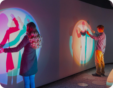 數(shù)字技術(shù): 感應(yīng)觸點裝置 、 弧幕影院 、 互動裝置等